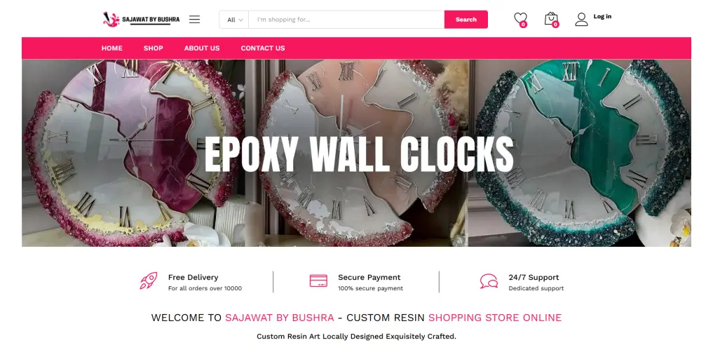 E-commerce platform for boutique clothing with size guide and wish list features.